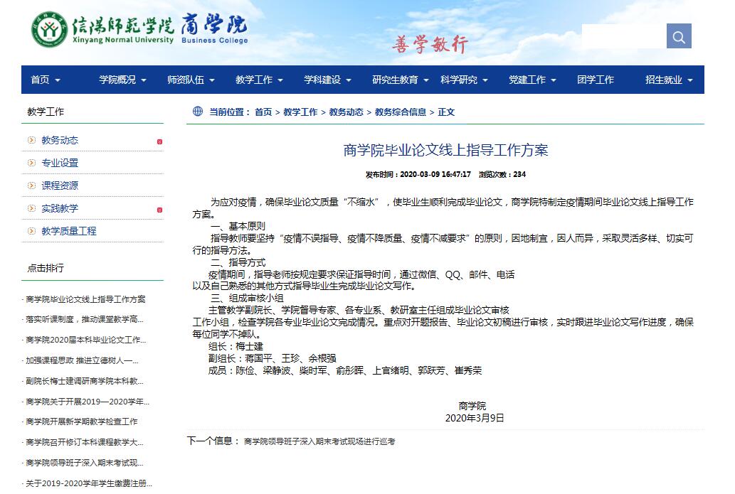 学院领导高度重视疫情期间毕业论文写作工作,制定应对疫情的毕业论文线上指导工作方案。