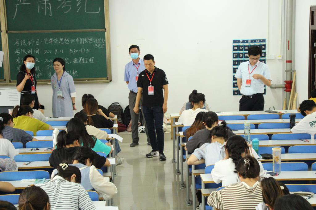 2022年9月13日,2021-2022学年第二学期期末延考考试正式开始。院长彭荣胜及其他领导班子成员一行深入教九楼105、106,社科楼415、416等考场进行现场巡视。