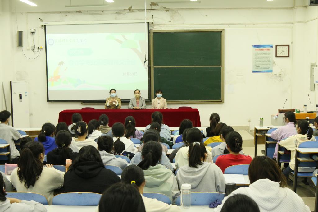 为帮助2022级新生尽快、全面地了解所学专业,合理规划大学生活,科学完成大学学业,10月13日晚,4k影视 会计学专业思想教育交流会在经管楼103教室顺利举行。 4k影视 会计学系主任郭跃芳,老师朱倩、孙艳出席此次会议,2022级会计学班全体学生参加会议。会议由郭跃芳主持。