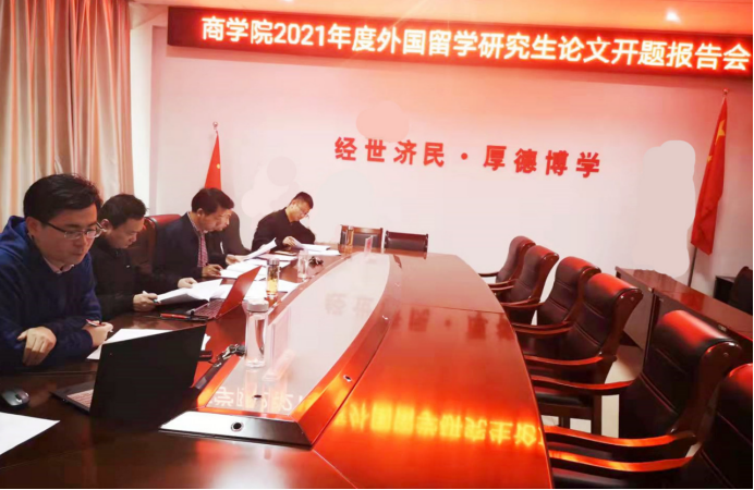 10月9日, 4k影视 在经管楼506会议室召开2021年度外国留学研究生论文开题答辩会。受新冠肺炎疫情影响,会议以线上方式进行,副院长梁静波、俞彤晖,留学生导师出席会议,来自塔吉克斯坦、津巴布韦等地的三名留学研究生参加会议。