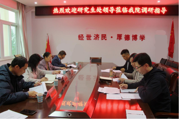 10月20日,研究生处处长沈文慧带领研究生处相关负责人来4k影视 调研指导工商管理一级学科硕士学位授权点专项评估工作,学院院长彭荣胜、副院长俞彤晖、工商管理系主任上官绪明、研究生工作秘书何凤参加会议。