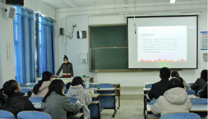 比赛分为讲课和说课两部分,主要考察教育硕士在完成教学设计、实施课堂教学、进行反思改进等方面的综合教学能力。同学们积极参与,认真准备,教学内容贴近时代和生活,课件制作精美,讲课语言流畅,教学思路清晰,得到了评委老师一致称赞。同时,评委老师还就说课和讲课过程中的语言组织、内容设计等方面存在的问题给出了建设性改进意见。