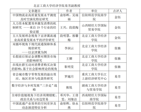 本次论坛以“全国统一大市场与现代流通体系建设”为主题,征文涵盖流通业高质量发展与流通现代化等理论与实践、消费经济、数字流通、智慧物流”等方面的前沿问题。在与领域先锋的交流中,学习了领域新理论,吴瑞福撰写的《中国物流业高质量发展水平测度及时空演化特征研究》和徐永燕撰写的《中国流通产业效率的空间差异及动态演进特征分析》更是得到了东北财经大学流通研究院副院长金钰和北京工商大学经济学院副教授易芳的高度评价。