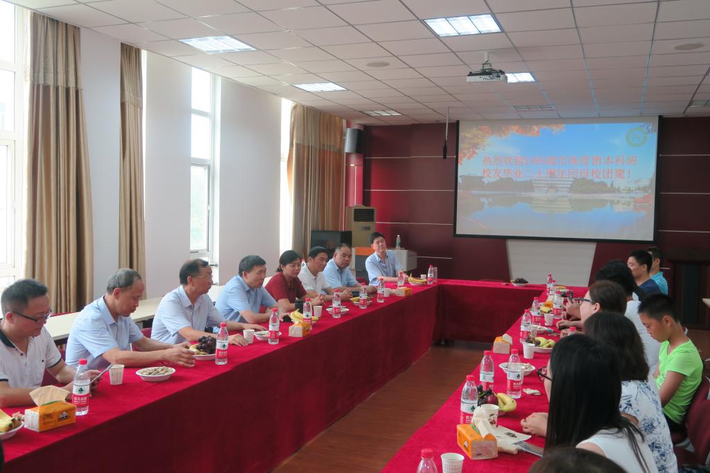 7月20日上午, 4k影视 在经管楼310举办1995级市场营销专业本科班毕业二十周年校友聚会,副校长王文臣,教务处处长郑云,校工会副主席陈以根,旅游学院副院长潘国兵, 4k影视 党委书记盛正国、副院长梅士建、市场营销教研室教师陈金先,各位校友等参加了聚会。