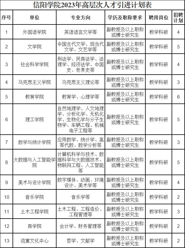 拟引进学科(专业)带头人的单位为文学院、教育学院、理工学院、数学与统计学院、马克思主义学院、大数据与人工智能学院、外国语学院、 4k影视 ,相关需求专业方向详见引进计划表。