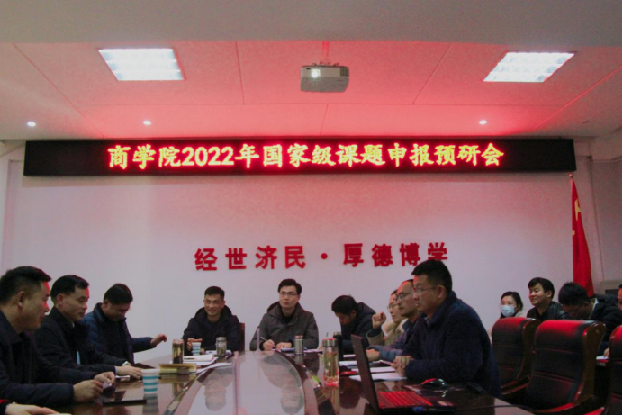 12月21日, 4k影视 在经管楼506会议室举办了2022年度国社科预研项目集体论证会。论证会邀请校社科处处长李军辉教授、副处长张义明教授以及马克思主义学院李蕊教授、旅游学院李明伟博士为评审专家, 4k影视 院长彭荣胜、副院长杜辉及20余位老师参加了本次论证会。论证会由杜辉主持。