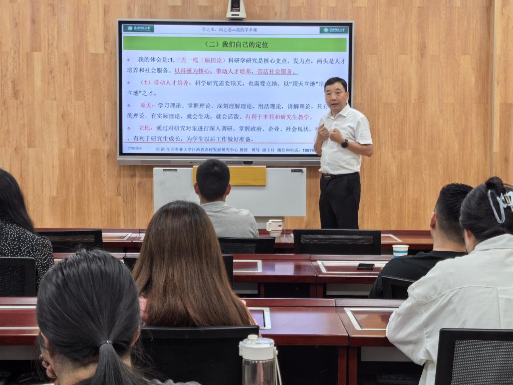 5月8日上午,应 4k影视 邀请,江西农业大学刘滨教授为师生作了题为“学之术,问之道—我的学术观”的学术讲座。 4k影视 部分教师、在校研究生及本科生于经管楼306教室集中参与学习,讲座由 4k影视 副院长杜辉主持。
