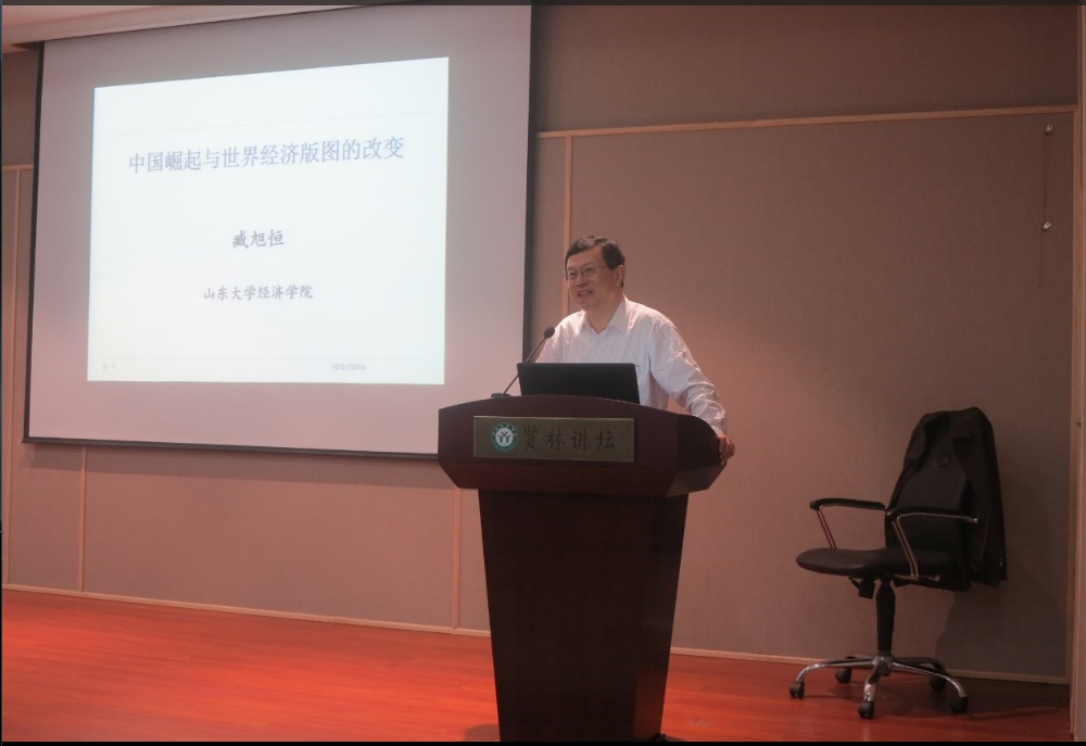 2016年10月21日上午,应经济学院邀请,山东大学臧旭恒教授在贤林讲坛做题为“中国崛起与世界经济版图的改变”的学术报告。报告会由 4k影视 齐城副校长主持,经济学院二百余名师生参与此次讲座。