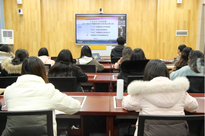 胡振虎从新常态下经济运行新特点、大规模减税降费背景下财政收支运行主要特征、新时代财政与经济的关系以及主体税种与经济指标之间关联度等四个方面对“十三五”时期的经济形势进行了全面回顾。随后,他在分析新冠肺炎疫情、国际贸易摩擦等外部冲击的基础上,着重阐述了“十四五”时期我国经济发展所面临的挑战与机遇,并从财政收支走势、财政工作重点领域、财政工作总体思路三个维度入手而详细解读了“十四五”时期宏观经济政策走势。最后,胡振虎分享了自己学术研究过程中的心得体会以及对前沿问题的判断技巧。经过此次学术讲座,与会师生对“十四五”时期我国宏观经济运行格局与政策趋势有了新的理解和思考。