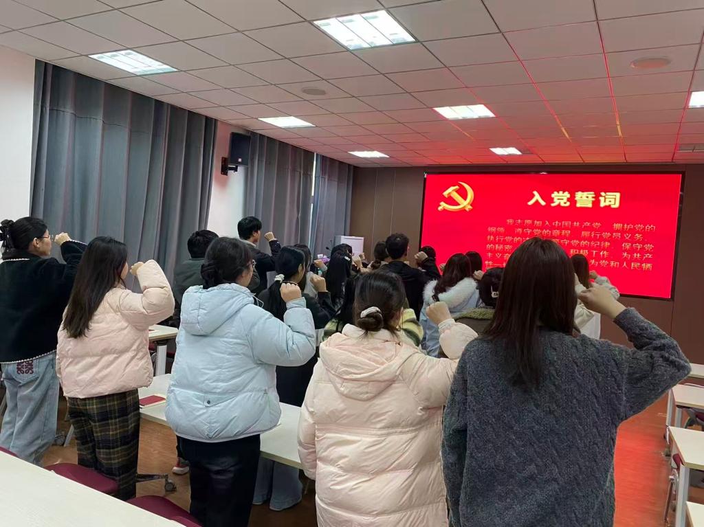 为强化学生党员身份认同与责任担当,11月25日下午, 4k影视 在经管楼310会议室举行2025年下半年新发展党员入党宣誓仪式。学院专职组织员韩月华主持仪式并领誓,全体新发展预备党员参加。