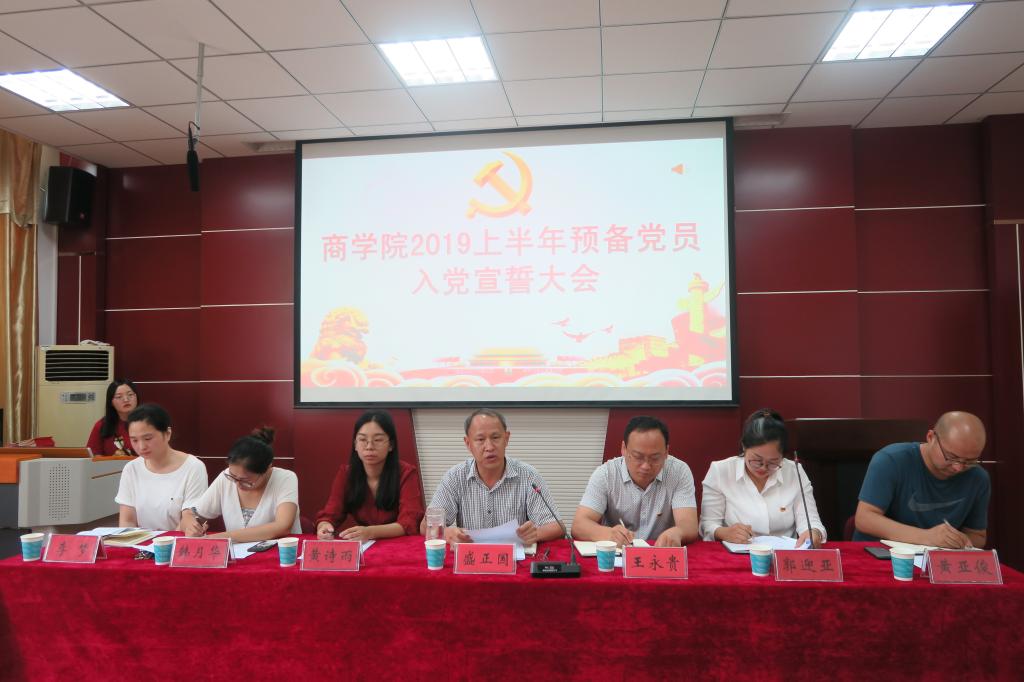 6月24日,我院在经管楼310举办2019上半年预备党员宣誓大会,学院43名预备党员在党旗的见证下光荣的完成了自己的人生的转折点,开启了人生新篇章。 4k影视 党委书记盛正国,副书记王永贵、团委书记黄诗雨、团委老师韩月华、黄亚俊、李梦出席会议,会议由团委老师郭迎亚主持。