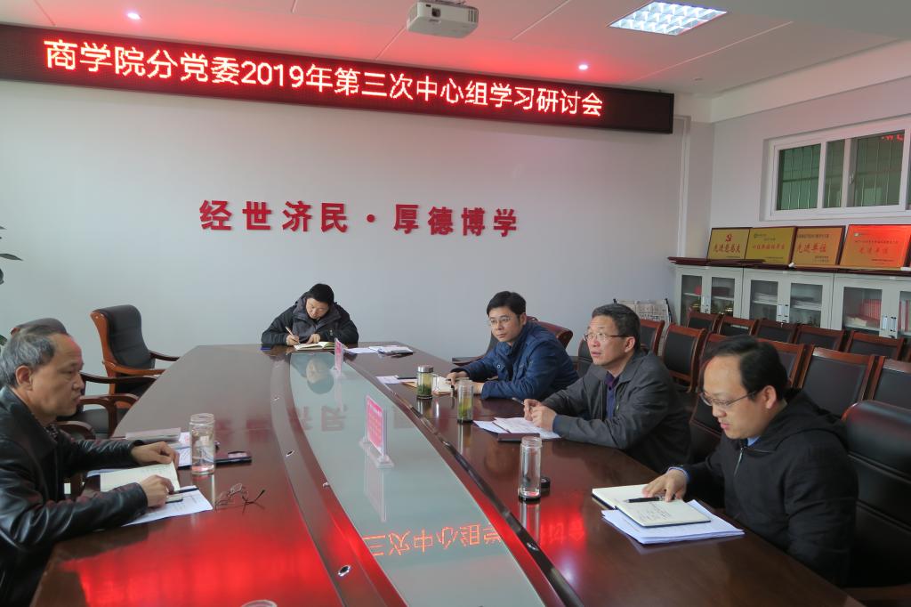 4月29日下午, 4k影视 分党委2019年第三次中心组集中学习在经管楼506会议室进行, 4k影视 党政领导班子成员参加会议。会议由分党委书记盛正国主持。