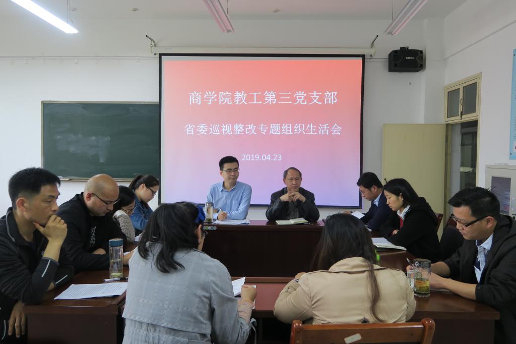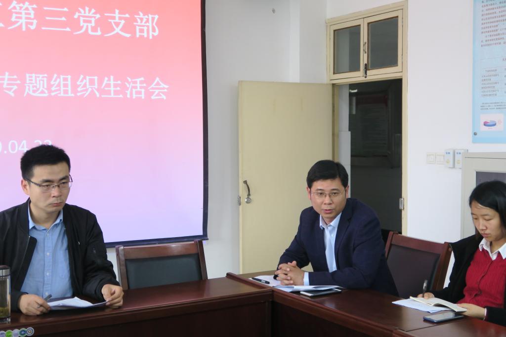 423日,根据学校党委的统一部署, 4k影视 教工第三党支部在经管楼502教室召开省委巡视整改专题组织生活会。这次组织生活会的主题是:聚焦省委巡视反馈问题和要求,以自我革命的勇气和担当对照检查、剖析根源、强化整改。会议由支部书记俞彤晖同志主持,支部全体教工党员出席,期间, 4k影视 党委书记盛正国同志列席参加教工第三党支部组织生活会。
