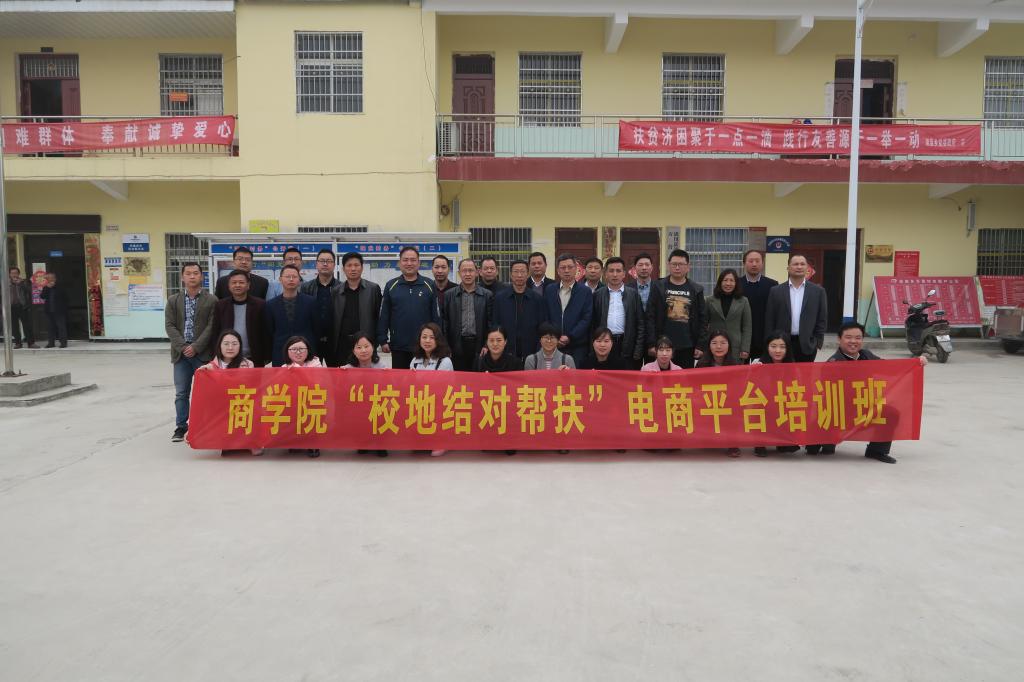 为深入学习贯彻习近平总书记扶贫开发重要战略思想,认真贯彻落实省委、校党委关于打好精准脱贫攻坚战的决策部署,积极履行校地结对帮扶职责,推动脱贫攻坚工作取得实实在在成效,3月29日,由 4k影视 教工第一党支部组建的“科技扶贫”服务团在 4k影视 党委书记盛正国的带领下前往潢川万营村举办“校地结对帮扶”电商平台培训活动,周边乡镇的干部及贫困村民近三十人参加了培训。