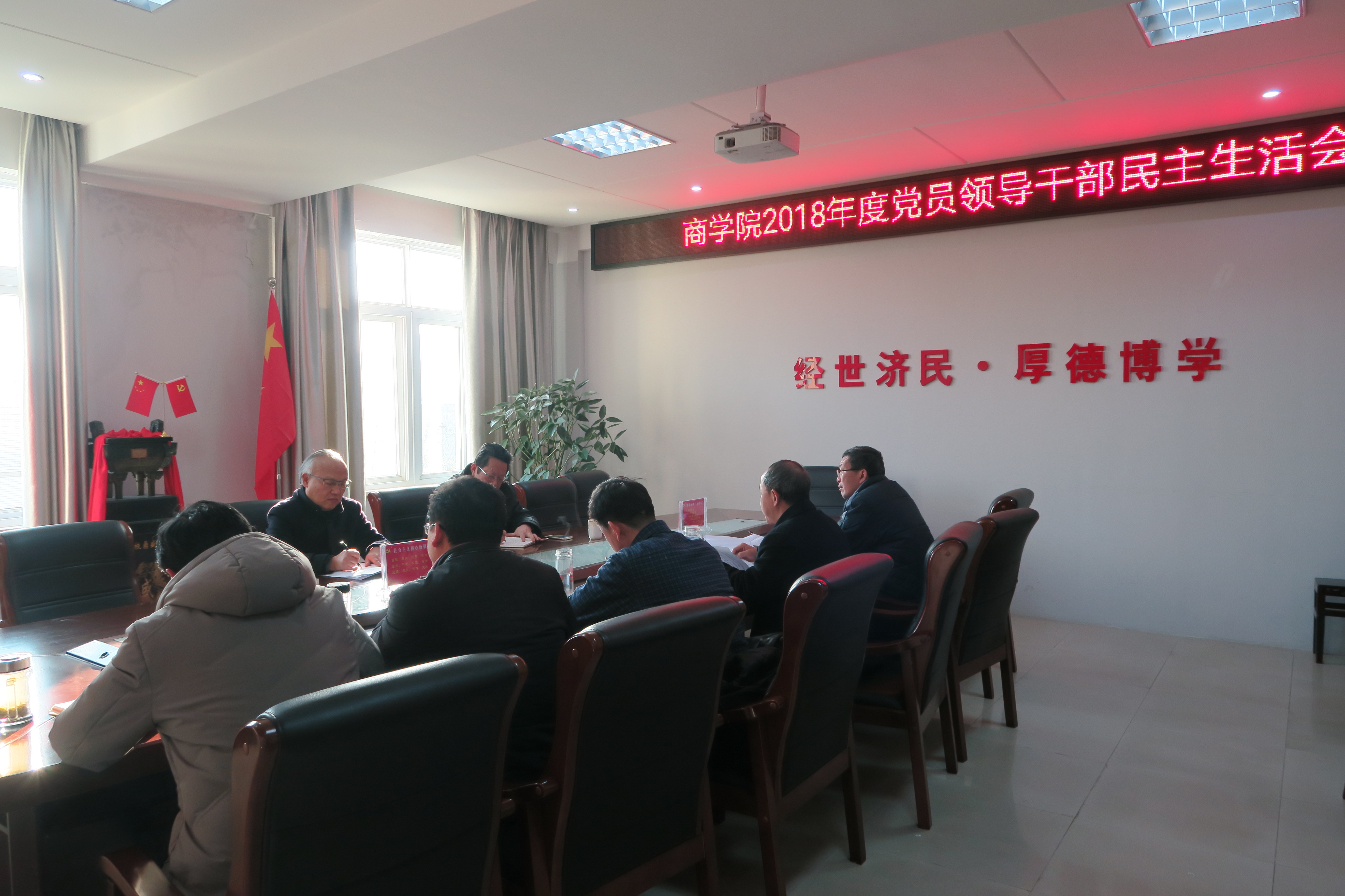 1月16日下午,商学院在经管楼506会议室召开了2018年党员领导干部民主生活会。校纪委书记龚立新和校纪委纪检员童建园莅临本院指导此次民主生活会的召开。院党委书记盛正国、副书记王永贵、副院长梅士建、李毓、院长助理杜辉等党员领导干部参加了会议。会议由 4k影视 党委书记盛正国主持。