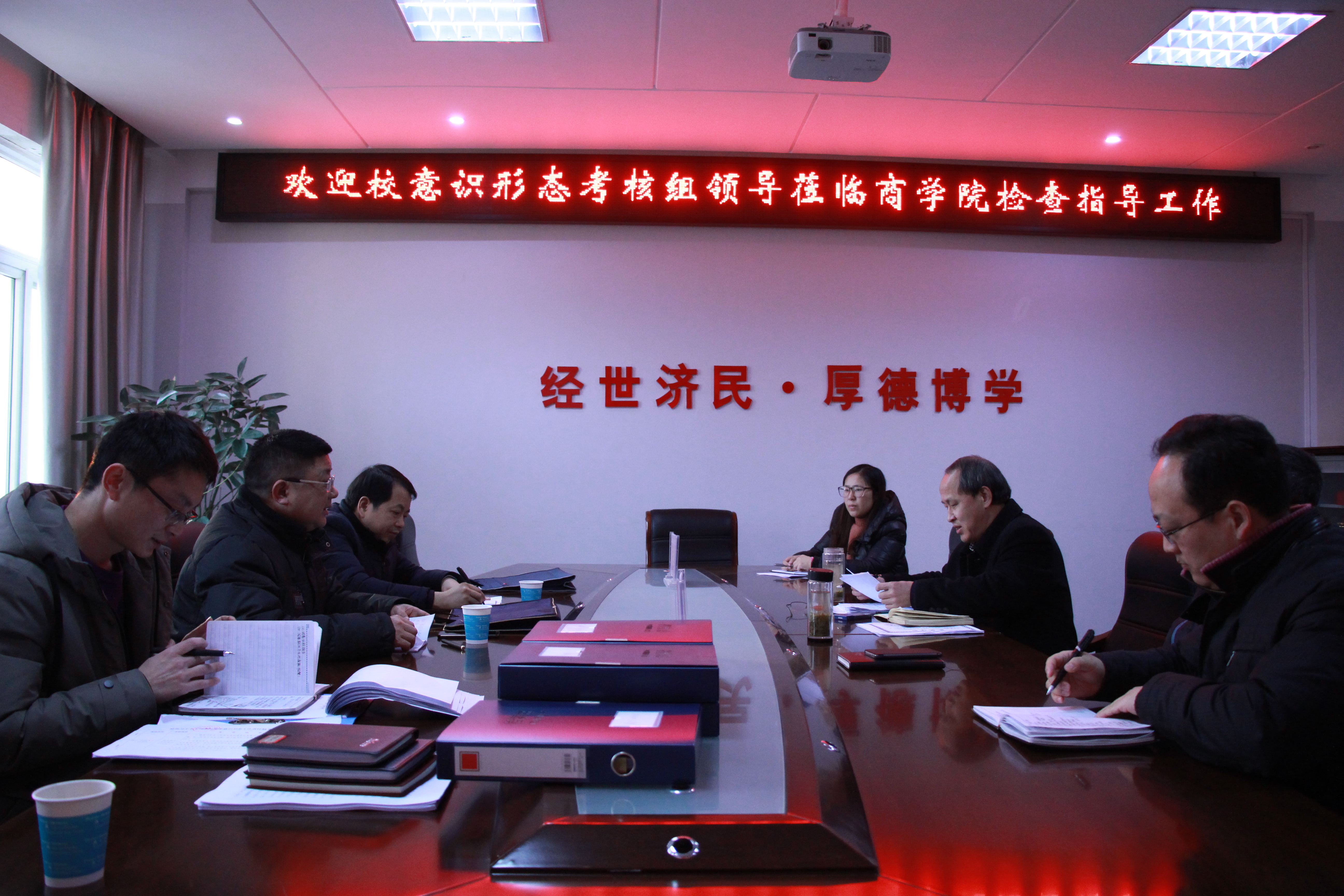 盛正国从履行“四种责任”、落实“八项任务”、坚持“三项制度”和学院意识形态工作亮点等方面对2018年意识形态工作进行了全面汇报。考核组通过听取汇报、查阅记录,对商学院关于思想政治理论学习和宣传、网络意识形态工作、课堂教学及学术交流管理、相关制度和队伍建设等方面进行了综合考核。