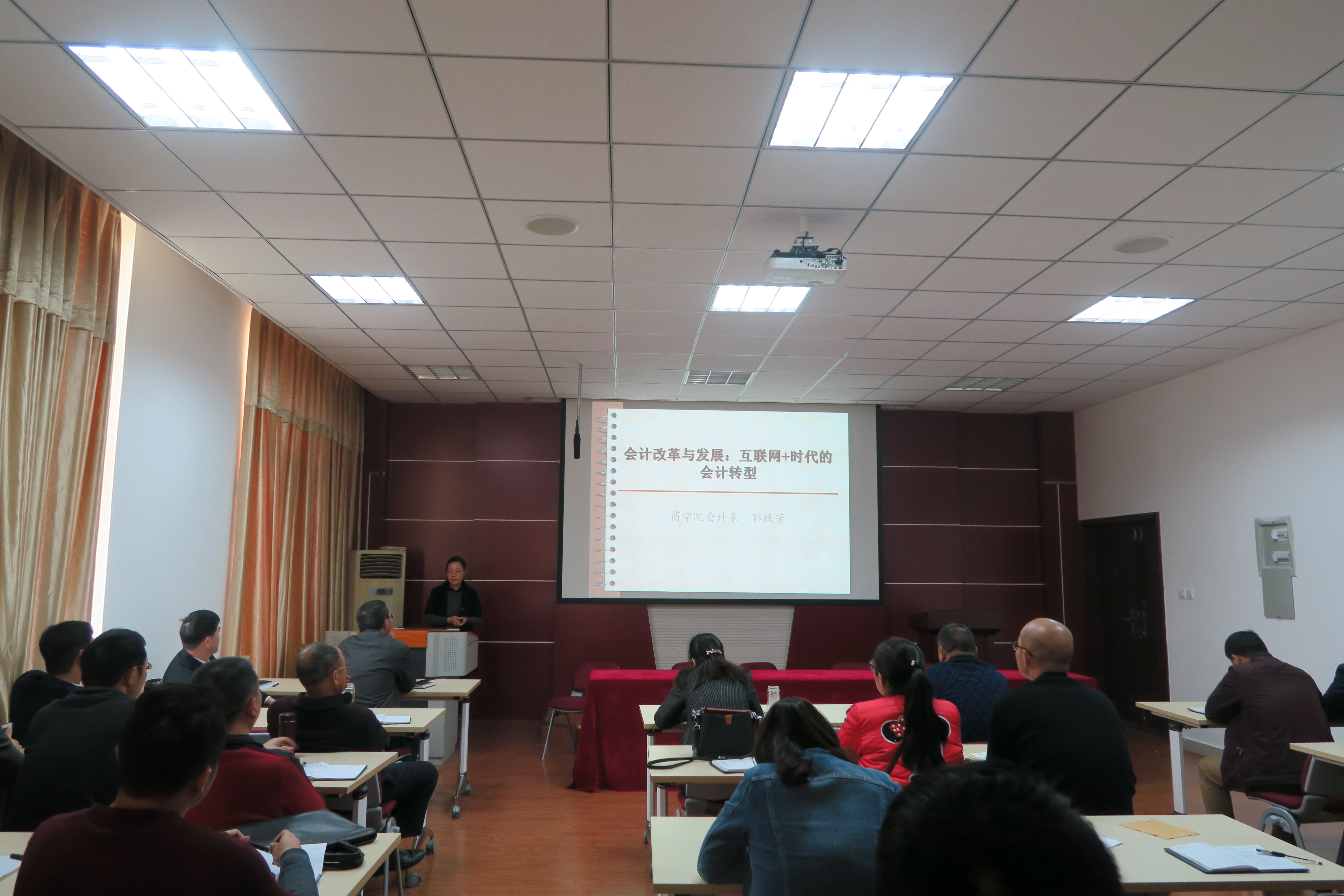 11月7日下午14:30, 4k影视 “学习新精神,展望新时代”党的十九大精神学习专题报告会在经管楼310隆重举行, 4k影视 全体教职工参加了此次报告会。四位专业教研室的老师立足专业、从不同的角度分别作了精彩的主题报告。余根强老师以《辉煌中国》纪录片为主线,为大家展示了新时代中国的辉煌成就,解读了“新矛盾”、“新思想”、“八个明确”,并展望了现代化新征程;柴时军老师以《中国再平衡:新政与新格局》为题,剖析了新时代中国经济和金融业的新动向;周荣军老师以《一带一路》为题,全面系统回顾了“一带一路”伟大工程的发展历程及其对全中国、全世界的发展作出的贡献;郭跃芳老师以《会计改革与发展——互联网+时代的会计转型》为题,分析了新时代会计事业面临的机遇和挑战,阐述了会计学科新的发展要求。