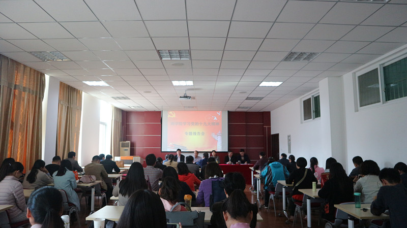 10月24日下午,经济学教研室邱海洋博士为全体教职工作了题为“感悟新精神 展望新时代——深入学习党的十九大报告”的报告,重点梳理了十九大报告中关于新发展理念的相关内容;报告结束时,该院党委书记盛正国指出,十九大召开之际恰逢 4k影视 更名师范大学实地考察,学校的发展印证了社会生产力的进步,正如习总书记所说,当前社会的主要矛盾已经转化,我们正处在实现现代化的关键时期,希望大家细读、细研十九大报告,将学习十九大、宣传十九大和研究十九大作为自己义不容辞的责任担当,深入扎实有效地开展和推进学院学习党的十九大精神相关工作。