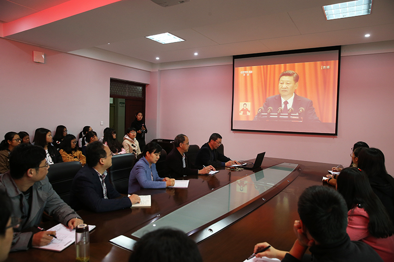 10月17日、23日,学院召开党委中心组会议,学习党的十九大精神,讨论部署学院学习党的十九大精神具体实施方案。会议上指出,要充分发挥党委中心组的示范带头作用,要充分结合教职员工的专业特点,要充分调动广大师生员工的学习热情,要将学习十九大精神活动常态化、制度化。