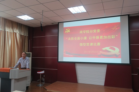 5月23日下午, 4k影视 分党委“决胜全面小康,让中原更加出彩”微型党课比赛在经管楼310会议室举行。学院党委成员和全体教工党员一起观看了比赛。