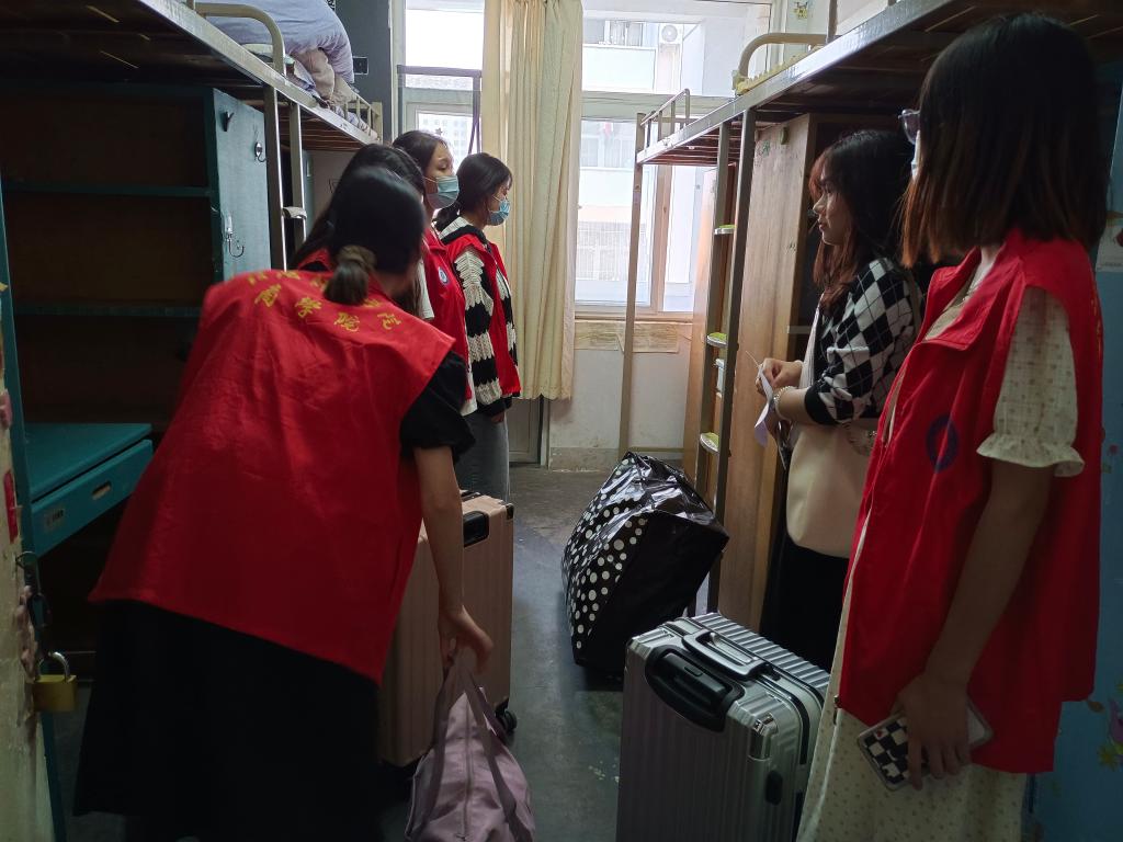 在新生宿舍,党员志愿服务者在老师的带领下,分成小组,开展走访活动。志愿者们悉心询问新生是否习惯新环境,认真察看学生宿舍内空调、照明、床位、卫生间等能否正常使用,对于个别宿舍存在的问题,及时做好记录,并反馈给相关部门解决。此外,党员志愿者们积极发挥先锋模范作用,为同学们普及疫情防控知识,引导新生进一步增强疫情防控的责任意识,积极配合学校疫情防控工作的要求,凝心聚力共克时艰。同时,希望同学们可以尽快适应新环境、新生活,开启人生新征程。