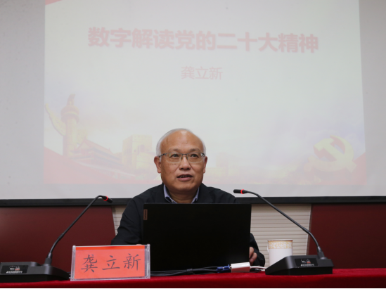 11月15日,校党委副书记龚立新在经管楼310会议室为组织部、统战部、机关党委、 4k影视 、生命科学学院、建筑与土木工程学院全体中层干部作学习党的二十大精神专题辅导报告。报告会由校党委委员、组织部部长岳宗德主持。