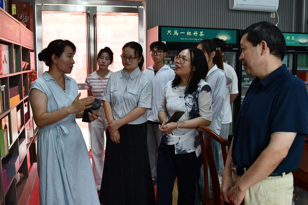 这支由学院党委副书记黄钰莹、工商管理系主任徐志芬博士带队的实践团队,首站来到了豫信茶叶有限公司。作为信阳毛尖产业的龙头企业,豫信茶叶集研发、种植、加工、销售于一体,拥有多项权威认证和荣誉。师生们围绕茶企发展中的困惑展开调研,特别是对豫信打造的“三茶一菜一水”多元产品矩阵进行了深入剖析。“豫信茶叶跳出单一茶叶产品的思路,开发茶酒、茶水等多元化产品,这不仅是丰富产品线,更是通过产业链延伸,精准满足不同消费场景和人群的需求,是提升市场竞争力的生动实践,”团队成员李浩然在调研后分析道,“他们构建的‘三茶一菜一水’产品矩阵,让我们对课堂上学到的‘产业链延伸’与‘产品组合策略’理论有了教科书般的现实理解。