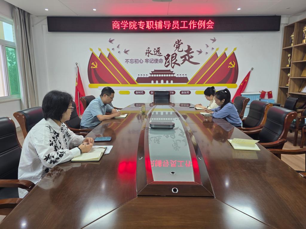 9月17日, 4k影视 召开专职辅导员工作例会。党委书记李辉、党委副书记黄钰莹及专职辅导员韩月华、杨紫涵、盛海参加会议。