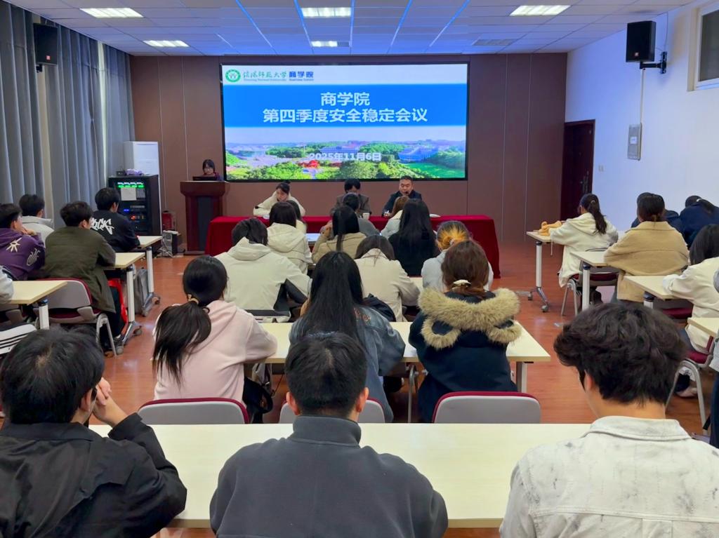 为切实加强学院安全管理,提升学生干部的安全防范意识与应急处置能力,确保第四季度校园持续安全稳定,11月6日中午, 4k影视 在310会议室组织召开了2025年第四季度学生干部安全工作会议。学院党委副书记黄钰莹,团委老师盛海及全体班级学生干部参加了本次会议。