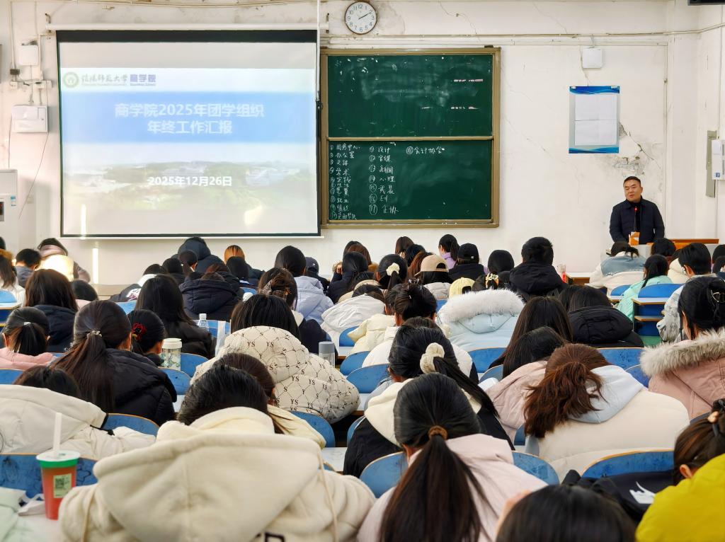 为总结2025年度团学工作成果、明晰后续工作方向,12月26日, 4k影视 2025年团学组织年终汇报于经管楼103教室召开。团学组织各部门部长、社团社长进行述职,学院团委老师盛海、学生兼职团委副书记袁泉、学生会主席团成员出席会议,全体干事观摩学习。