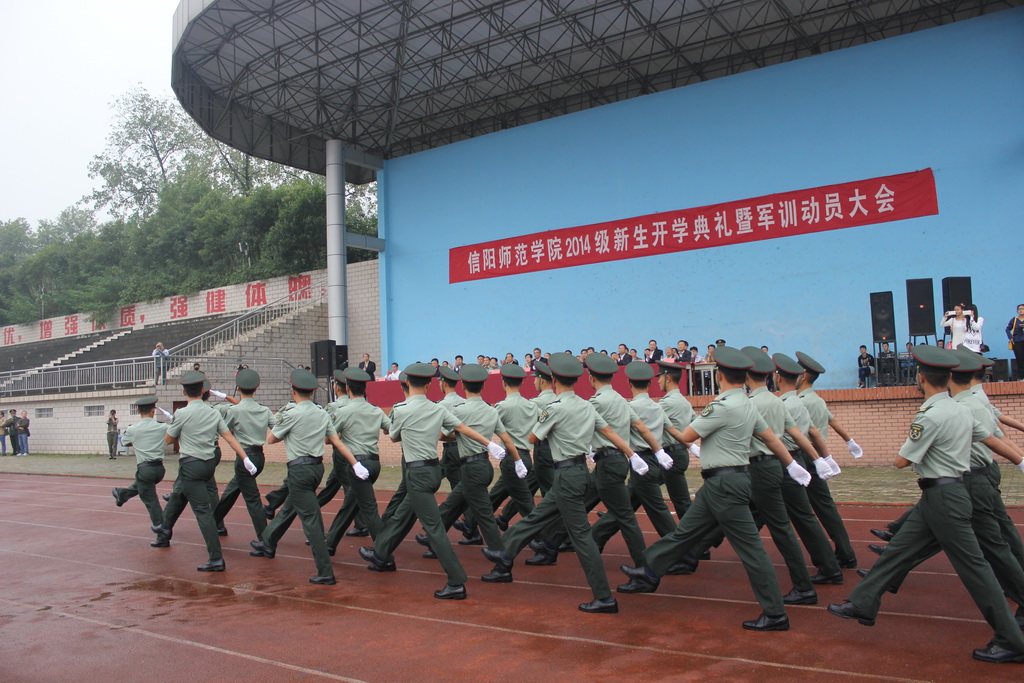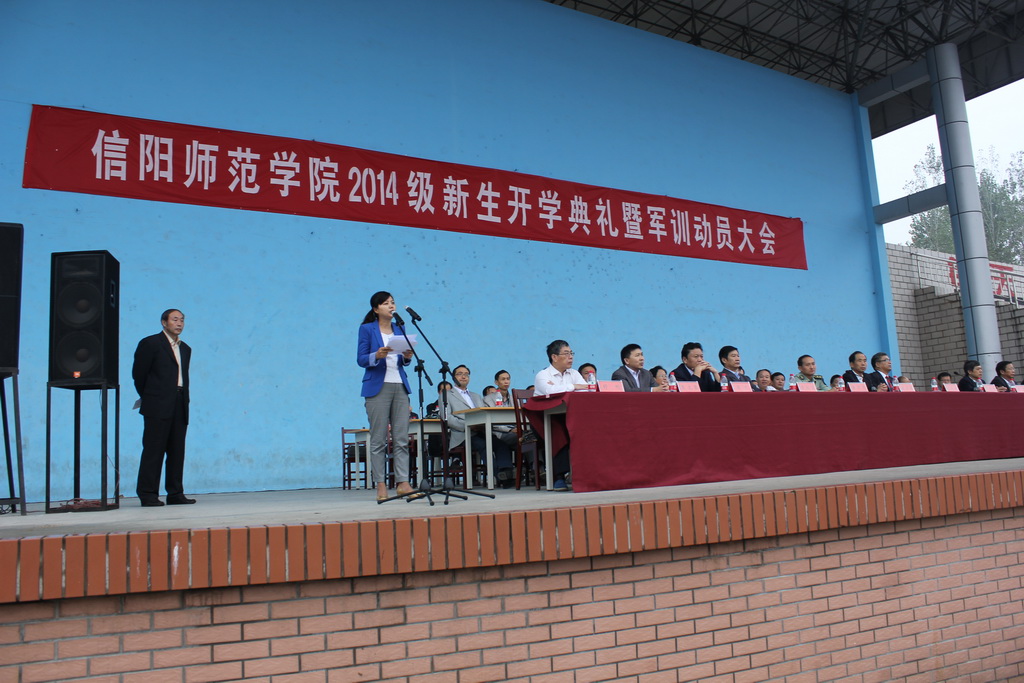 9月13日上午,信阳师院在 4k影视 西体育场隆重举办2014级新生开学典礼暨军训动员大会。校党委书记孙宏典,校长卢克平,党委副书记高建社,党委副书记、纪委书记李绍文,副院长李俊、张力、郜火星、王文臣、刘彦明,校长助理舒刚、陈登报,承训部队首长,以及学校各相关职能部门负责人和各学院领导出席本次大会。大会由余作斌主持。