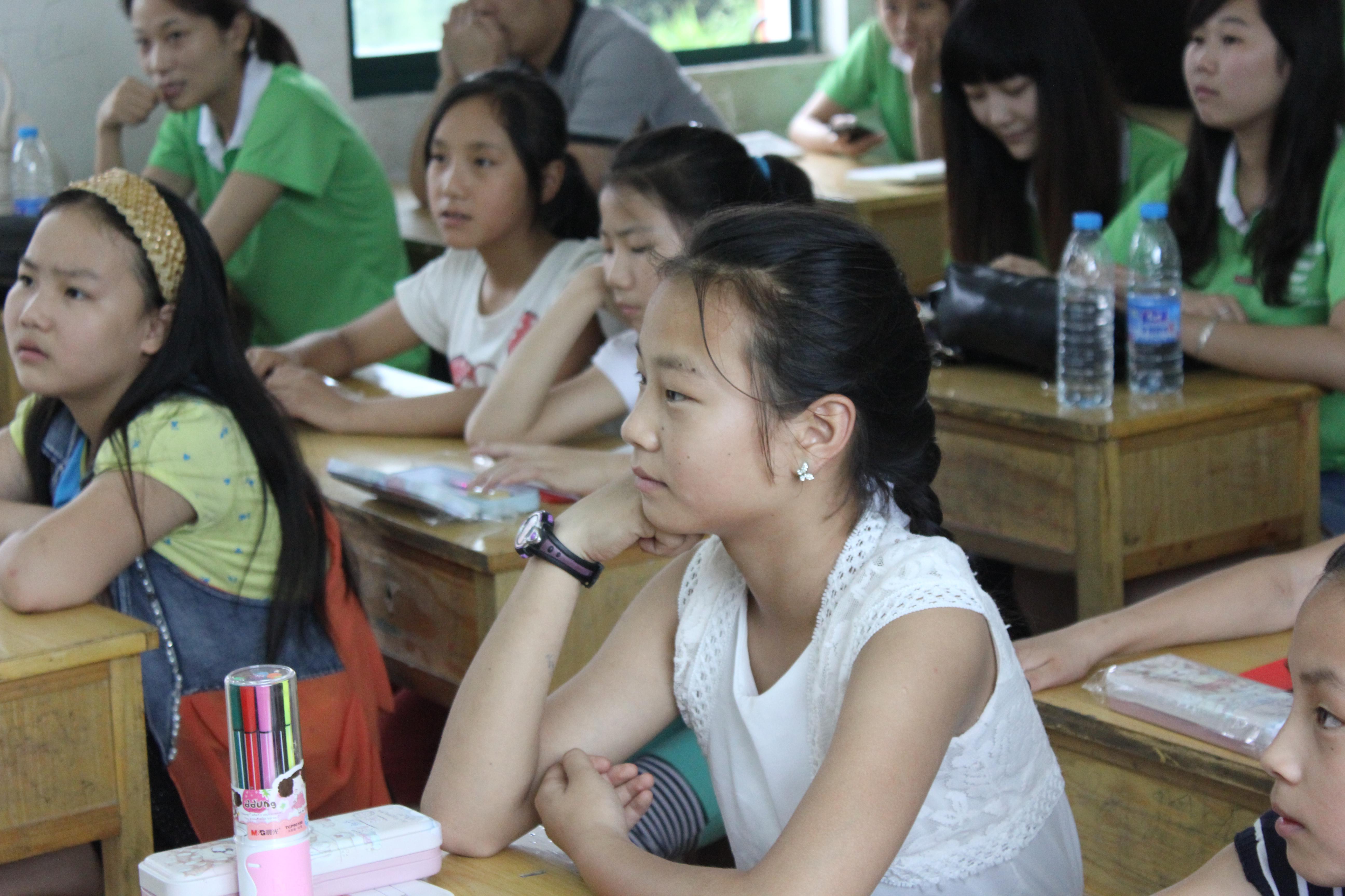 在孩子们的热烈欢迎下大学生们充当了他们老师,大学生针对孩子们所学课程进度进行了有针对性的授课。大学生们讲课热情高涨,方法有趣:史丹丹同学以《送元二使安西》为切入点,详细地向学生们介绍了诗词分析技巧、并与大家富有感情地朗诵诗词,姚佳琪同学就单位换算与大家分享了数学学习方法,并交流了自己多年数学学习的感悟、郝悦同学通过现场英语写作来与大家共同探讨语法知识,在孩子的配合下,一篇作文终于完整写出。授课期间孩子们边听边记,积极发言,气氛活泼热烈。大学生们勉励孩子们刻苦学习,不忘理想,以优异成绩回报关心自己的人。最后教学活动在《同一首歌》、《小星星》的歌声中结束,课后孩子们纷纷表示哥哥姐姐的讲课幽默风趣,易于接受,让自己发现了学习的乐趣。