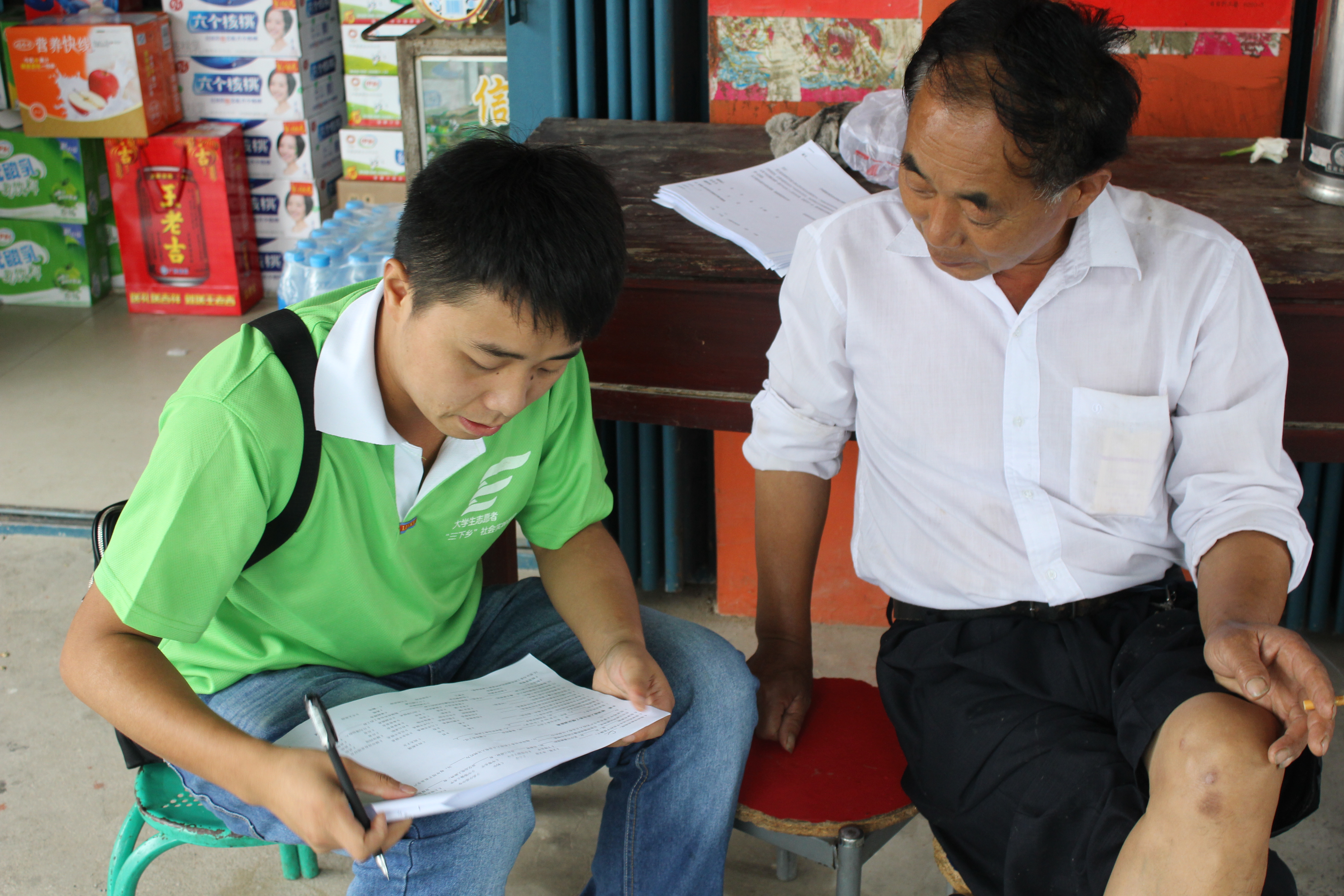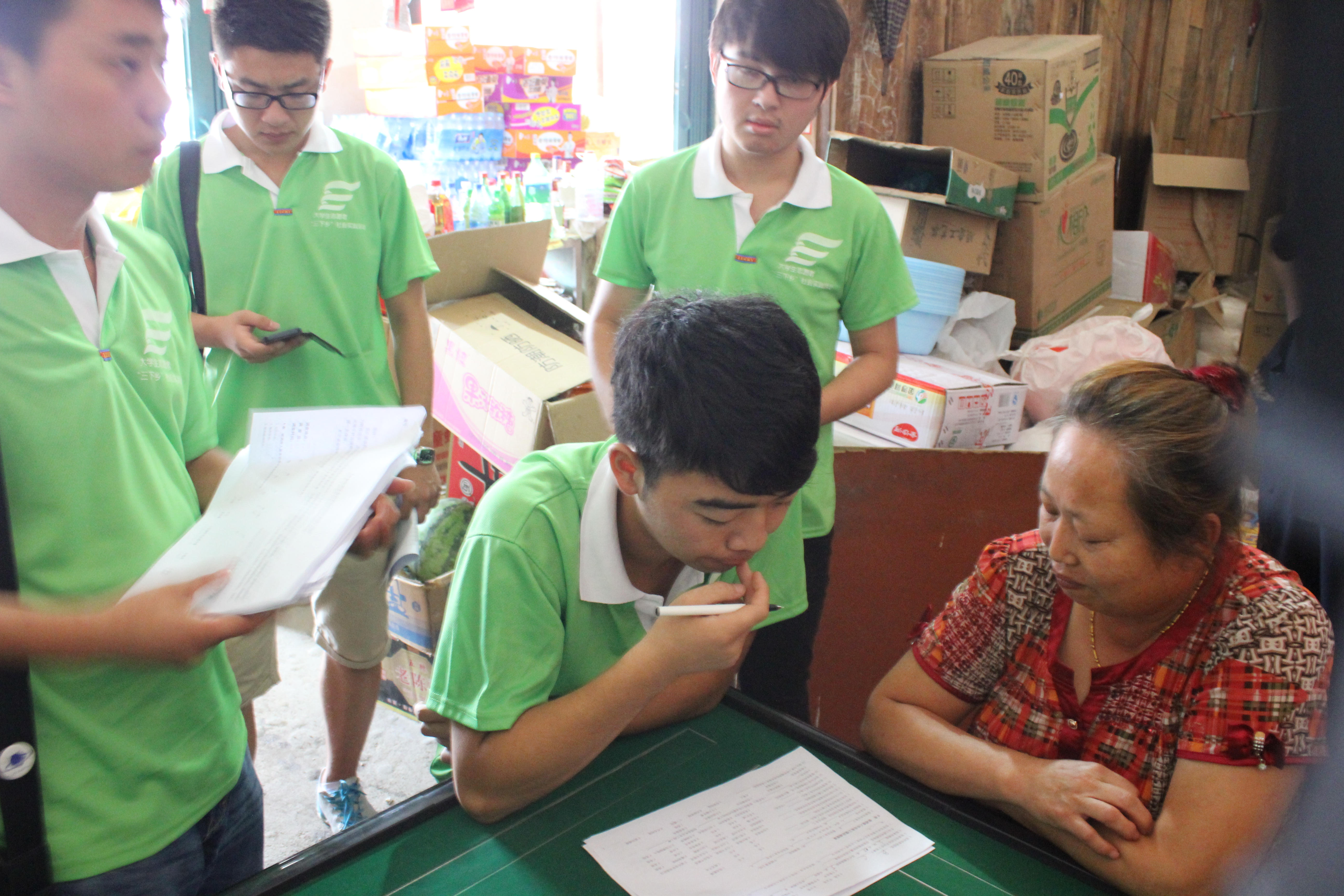 为了更好地了解农村劳动力转移现状、改善和提高农业生产和农民生活状况、为政府制定支农政策提供参考,2号上午同学们在陈老师的带领下来到镇中心开展了题为《中原经济区农村劳动力有序转移》问卷调查。同学们分为3队分头行动,到商店、居民家庭中进行采访。同学们耐心、认真的询问,就“受教育程度、土地拥有状况、收入来源比例等”进行调研。活动之后,同学们将所调研的情况进行归纳总结。