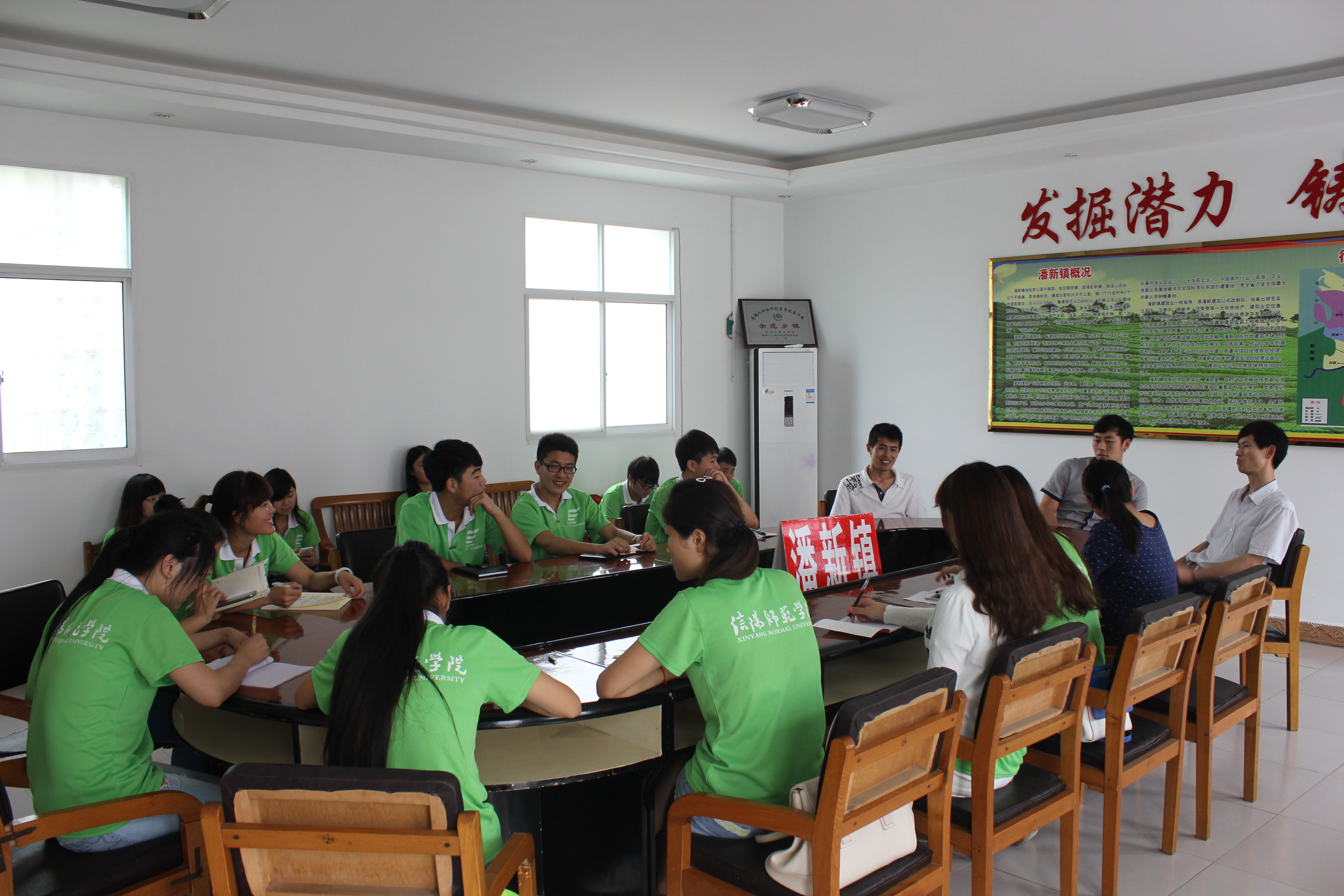 7月1号、2号两天经济学院社会实践小分队在团总支陈颢文老师的带领下驱车来到信阳罗山县潘新镇进行调研学习。经过一个半小时的车程,同学们顺利到达,受到了镇政府江书记、张主任等人的热情欢迎。在短暂的交流之后,同学们立即展开了丰富的活动。
