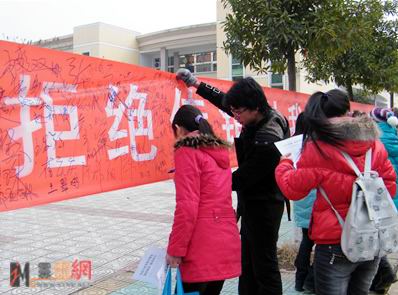12月18日上午,经管学院营销研习协会在八餐小广场成功举办了反传销万人签名活动。此次活动围绕“拒绝传销,从我做起;举报传销,人人有责”主题展开,现场为同学们发放识别传销骗术的宣传单,以帮助同学们认清传销危害,远离传销行为。同时,营销研习协会还以展板、条幅等形式向学生们宣传反传销知识,提高同学们的自我防范意识,并为前来咨询的同学讲解了部分自行解救、跳出传销陷阱的方法和建议。此次活动得到了同学们的极大认可和积极参与,“虽然我们都听说过传销,却并不了解它,这次活动使我懂得了传销的可怕,也教会我在以后的生活中不断提高自我防范意识。”一个参加活动的同学认真地说。