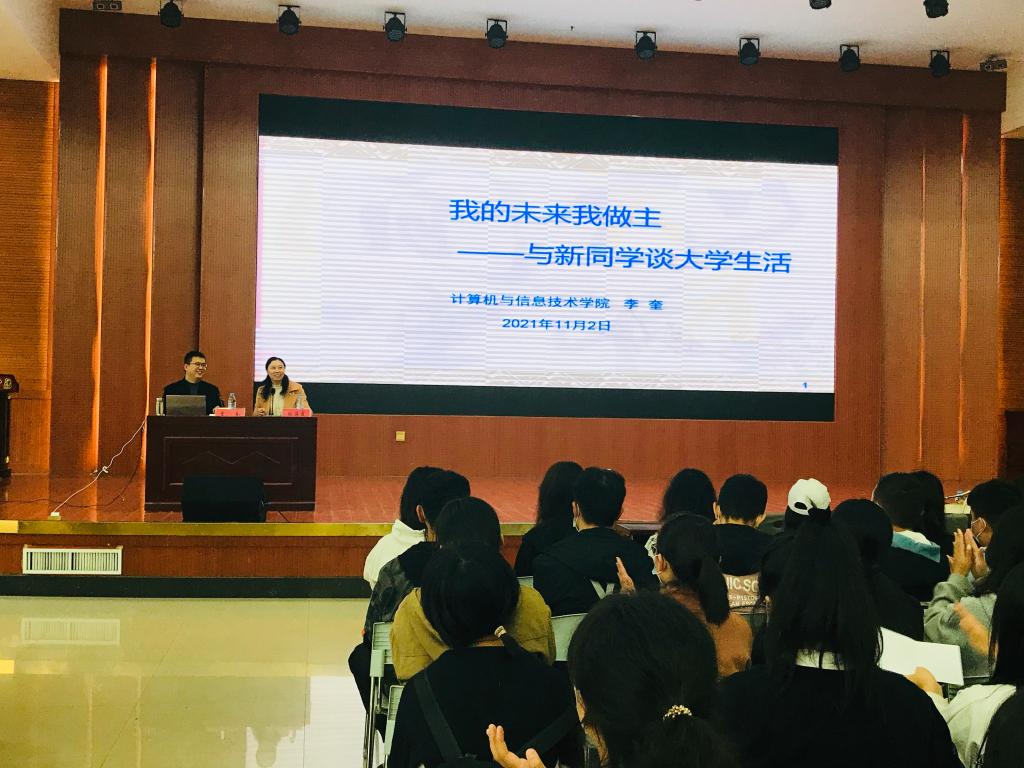 根据校团委统一安排,11月2日,计算机学院党委副书记李奎应邀为2021级新生团校作《我的未来我做主——与新同学谈大学生活》专题报告, 4k影视 和预科班全体新生参加,报告会由 4k影视 党委副书记张海霞主持。