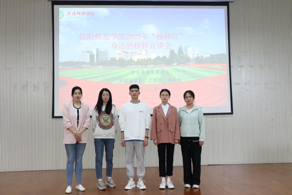 为充分发挥青年榜样的先进典型导向作用,激励青年学生珍惜韶华,不懈奋斗,4月29日下午,“‘榜样红’——身边的榜样宣讲会”在人文楼报告厅举办。 4k影视 杨紫涵、文学院许霏、外国语学院孔宪巍等老师和三个学院的学生代表参加了宣讲会。大学生国家奖学金获得者任旭、校园明星程晓龙、自强之星王金艺受邀进行宣讲。