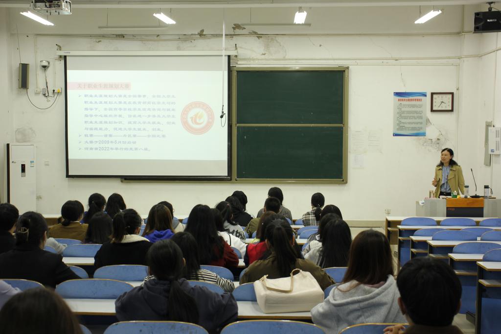 经深入动员,4k影视 有50余名同学报名参加了本届职业生涯规划大赛。10月14日晚上,职业生涯规划大赛赛前指导会在经管楼103教室举行, 4k影视 党委副书记张海霞从大赛的意义、比赛规则、奖项设置、职业生涯规划书撰写注意事项等方面对参赛选手进行了集中辅导,并集中观摩了河南省第七届职业生涯规划大赛部分获奖作品。