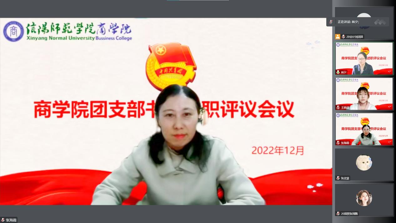 为加强基层团组织建设,提升基层团组织的工作活力,12月9日下午,4k影视 2022年基层团支部书记述职评议会以腾讯会议的形式成功召开。 4k影视 党委副书记张海霞、团委老师李梦出席会议,4k影视 团委主要学生干部、各基层团支部书记参加会议。