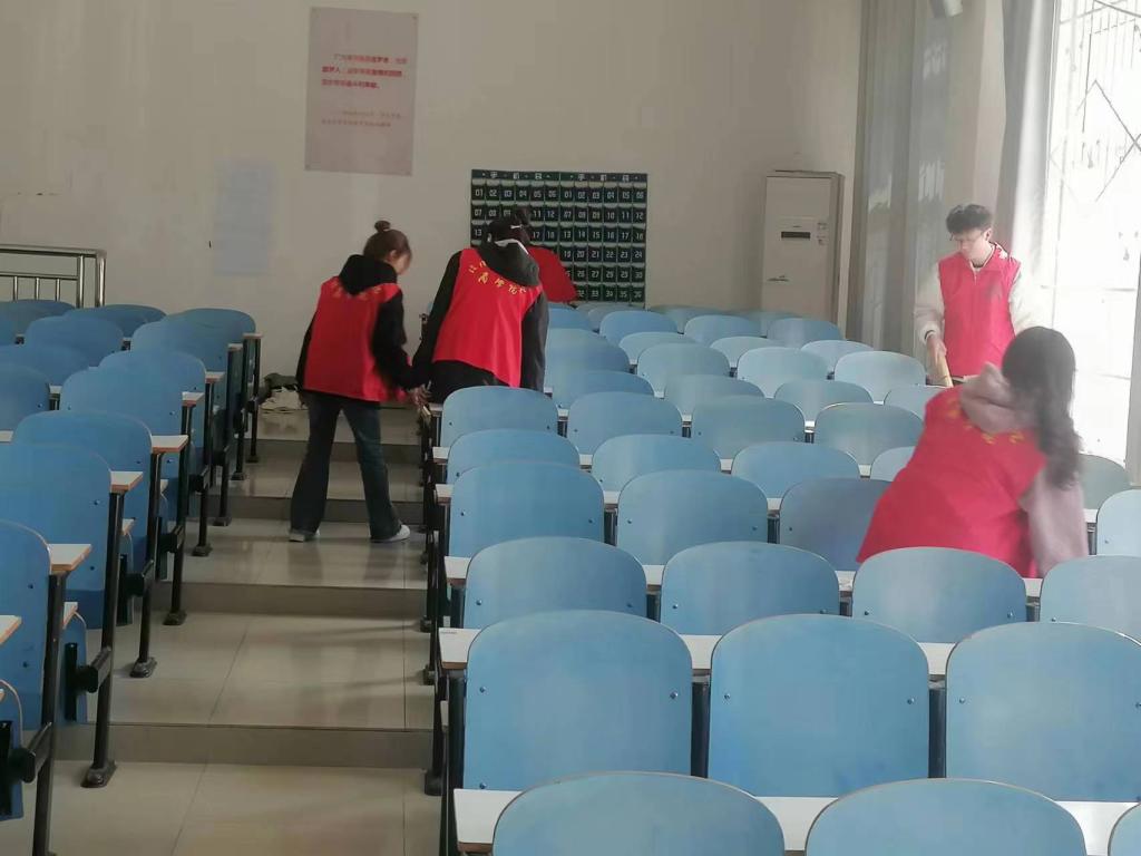 3月5日上午,4k影视 青年志愿者对经管楼固定教室进行了卫生死角清理。志愿者们充分发扬不怕苦、不怕累的奉献精神,对教室地面、讲台、多媒体设备、窗台等进行了彻底清理和打扫,将楼道内放置的展板架等物品进行了规整,使经管楼教室整洁明亮,为同学们创造良好的学习环境。