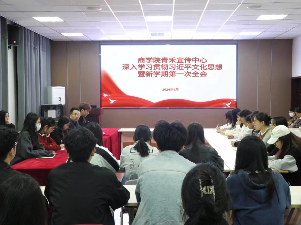 为深入学习贯彻习近平总书记对宣传思想文化工作的重要指示精神,4月7日晚, 4k影视 在经管楼310会议室召开青禾宣传中心深入学习贯彻习近平文化思想暨新学期第一次全会。 4k影视 团委书记袁巍峰出席,宣传中心全体成员参加,会议由宣传中心主任王星豪主持。