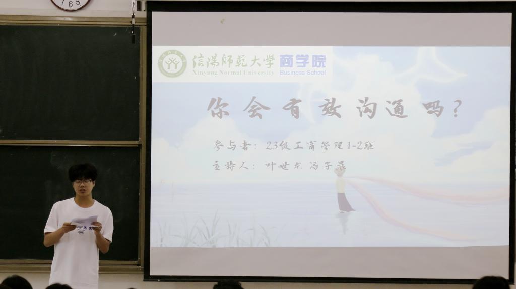 为落实立德树人根本任务,促进学生认识自我、调控自我,增强承受挫折、适应环境能力,从而培养学生健全人格和良好心理素质。2024年5月15日下午,由23级工商管理全体同学参与举办的“你会有效沟通吗?”心理主题班会在经管楼101教室顺利开展,班会取得圆满成功。4k影视 学生工作处副处长杨乐、 4k影视 党委副书记张海霞莅临活动现场指导,对4k影视 学生心理健康教育工作给予充分肯定。会议由23级工商管理班班主任雷显凯主持。