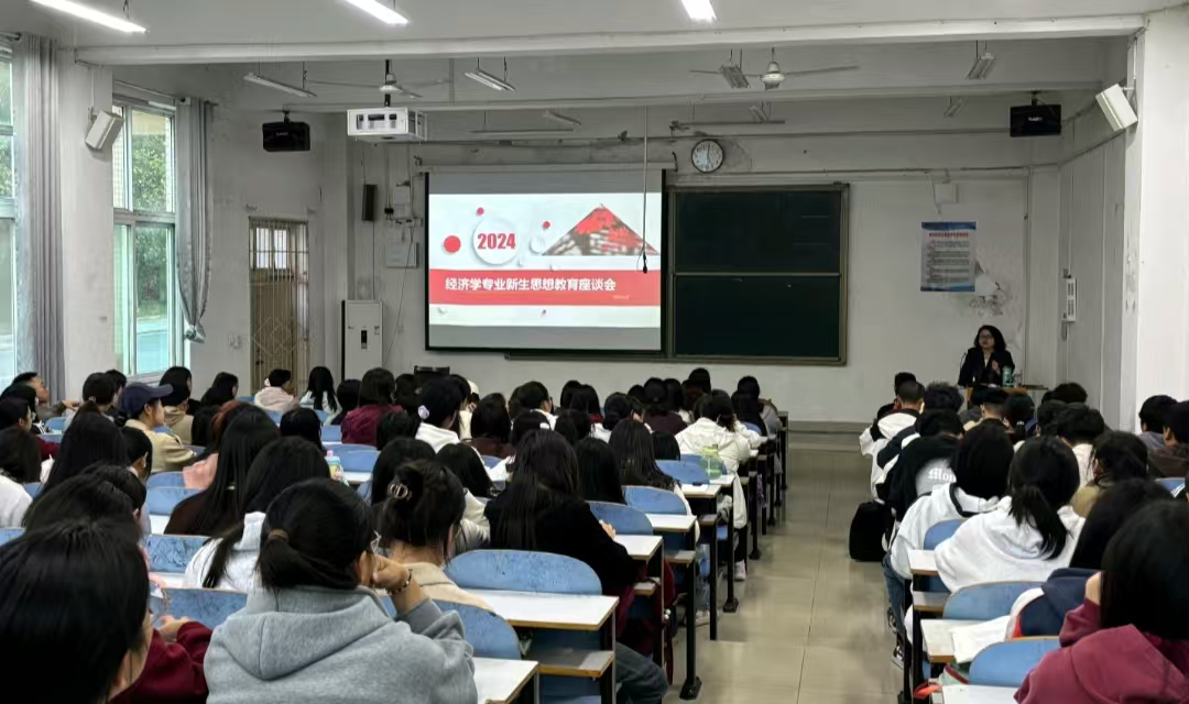 10月22日下午, 4k影视 在经管楼103教室成功举办了2024级经济学专业思想教育班会。夏金梅老师、黄杰老师、辅导员孔海燕与李肖肖,以及全体经济学专业新生参加了此次班会。