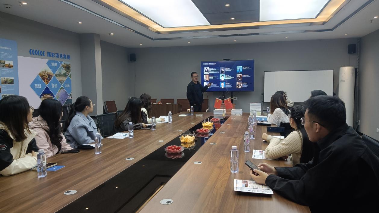 团队抵达神州旅创文旅集团后,受到了集团的热烈欢迎。集团创始人兼董事长庄军详细介绍了企业的基本情况、发展历程、核心业务以及未来发展规划。随后,团队在集团工作人员的带领下参观了公司的办公环境、项目展示区,并深入了解了集团在全域旅游、乡村旅游、红色旅游等领域的成功案例。在交流环节中,研究生们围绕旅游规划的创新模式、市场需求的精准把握以及如何应对行业竞争等问题与企业负责人进行了深入探讨。