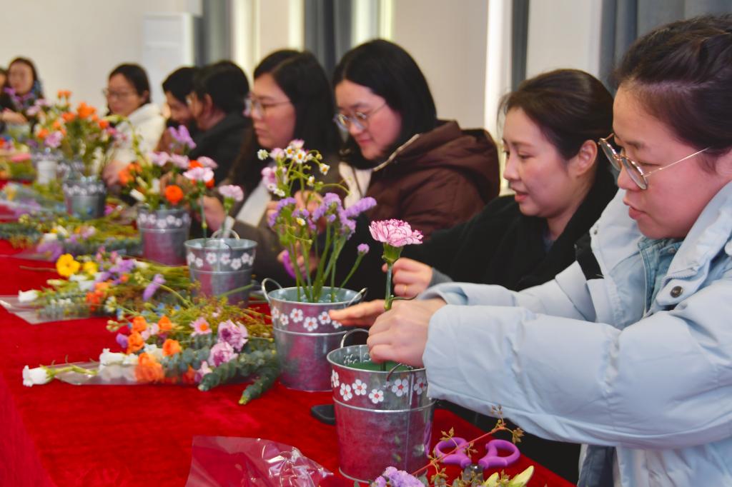 3月17月, 4k影视 在经管楼310 会议室举办“芳菲三月 以花怡情”花艺美育活动, 4k影视 女教职工齐聚一堂,在花香与创作中共度温馨雅致的节日时光。