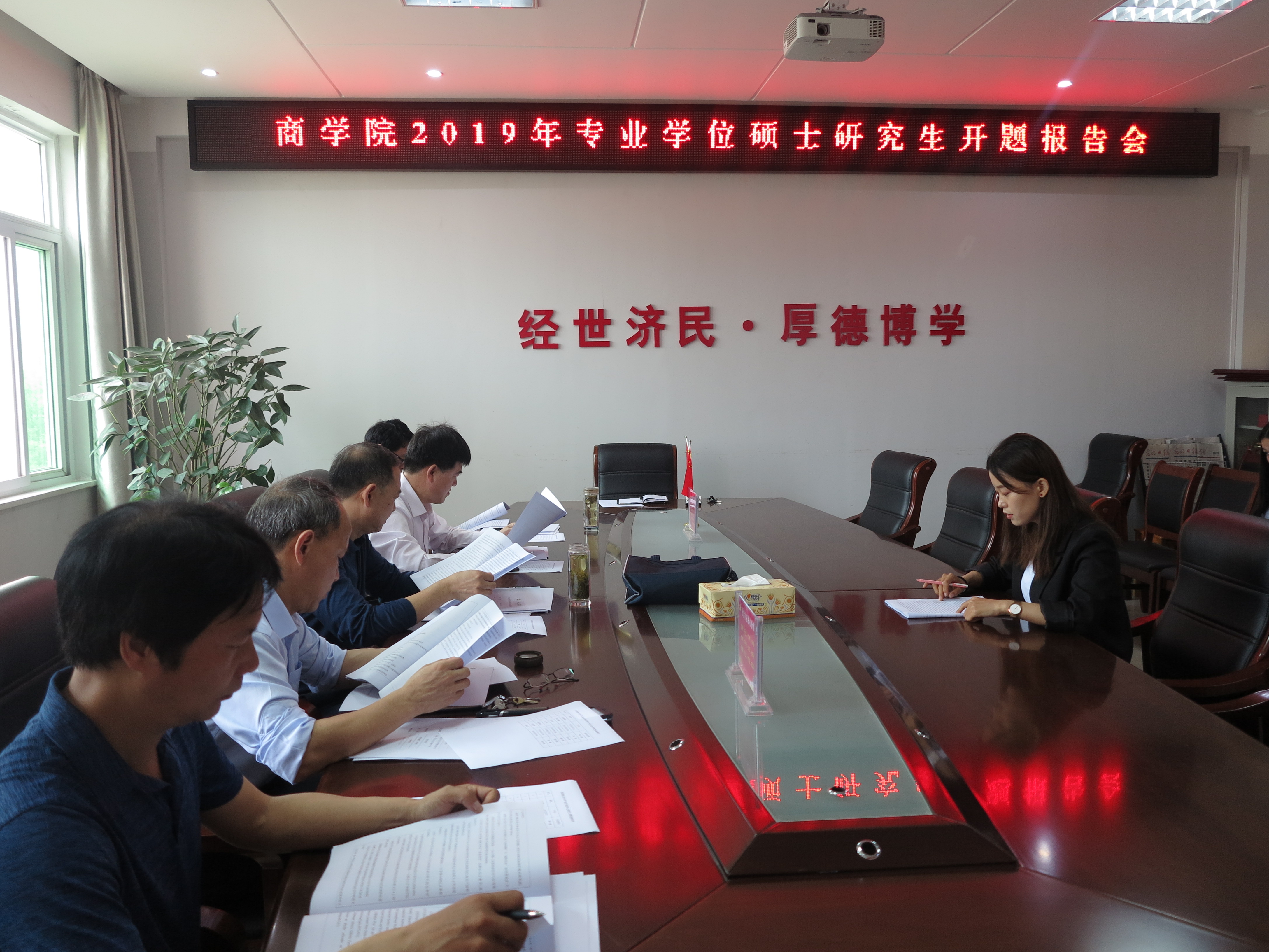 5月17日, 4k影视 2019年度专业学位硕士研究生学位论文开题报告会在经管楼506会议室举行。报告会由李全亮教授主持,评委老师、研究生秘书及2018级研究生参加本次活动。