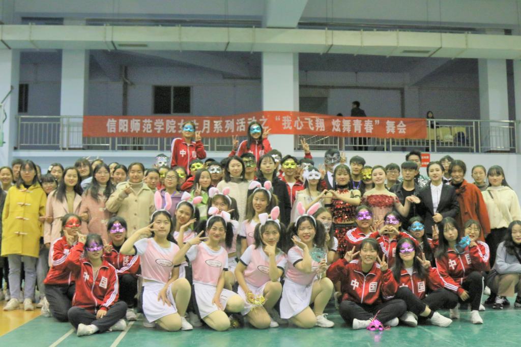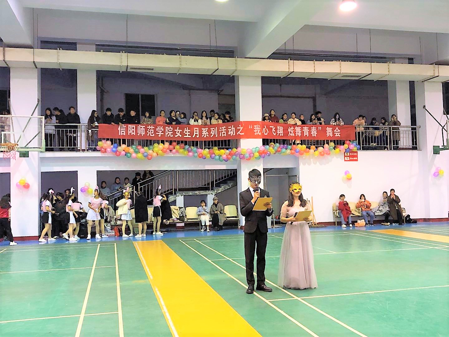 为丰富大学生课外娱乐生活,增强各院系同学之间合作与交流。11月20日晚7点,由校团委主办、 4k影视 承办的信阳师范学院女生月系列活动之“我心飞翔 炫舞青春”舞会于体育馆开展。 4k影视 团委书记黄诗雨老师、杨紫涵老师出席本次活动。