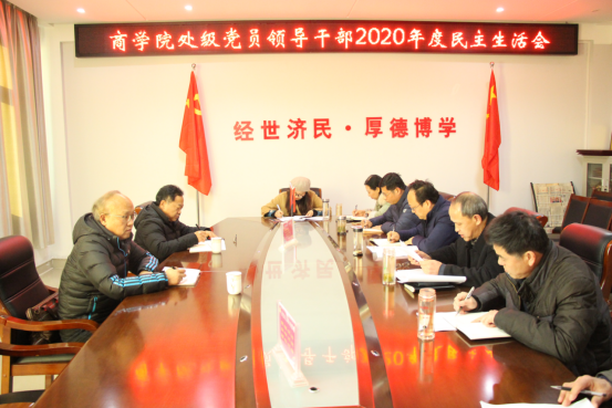1月14日下午, 4k影视 在经管楼506会议室召开了2020年度处级党员领导干部民主生活会。校纪委书记龚立新、综合室主任周经兵到会指导,学院全体领导班子成员参加了会议。会议由商学院党委书记盛正国主持。