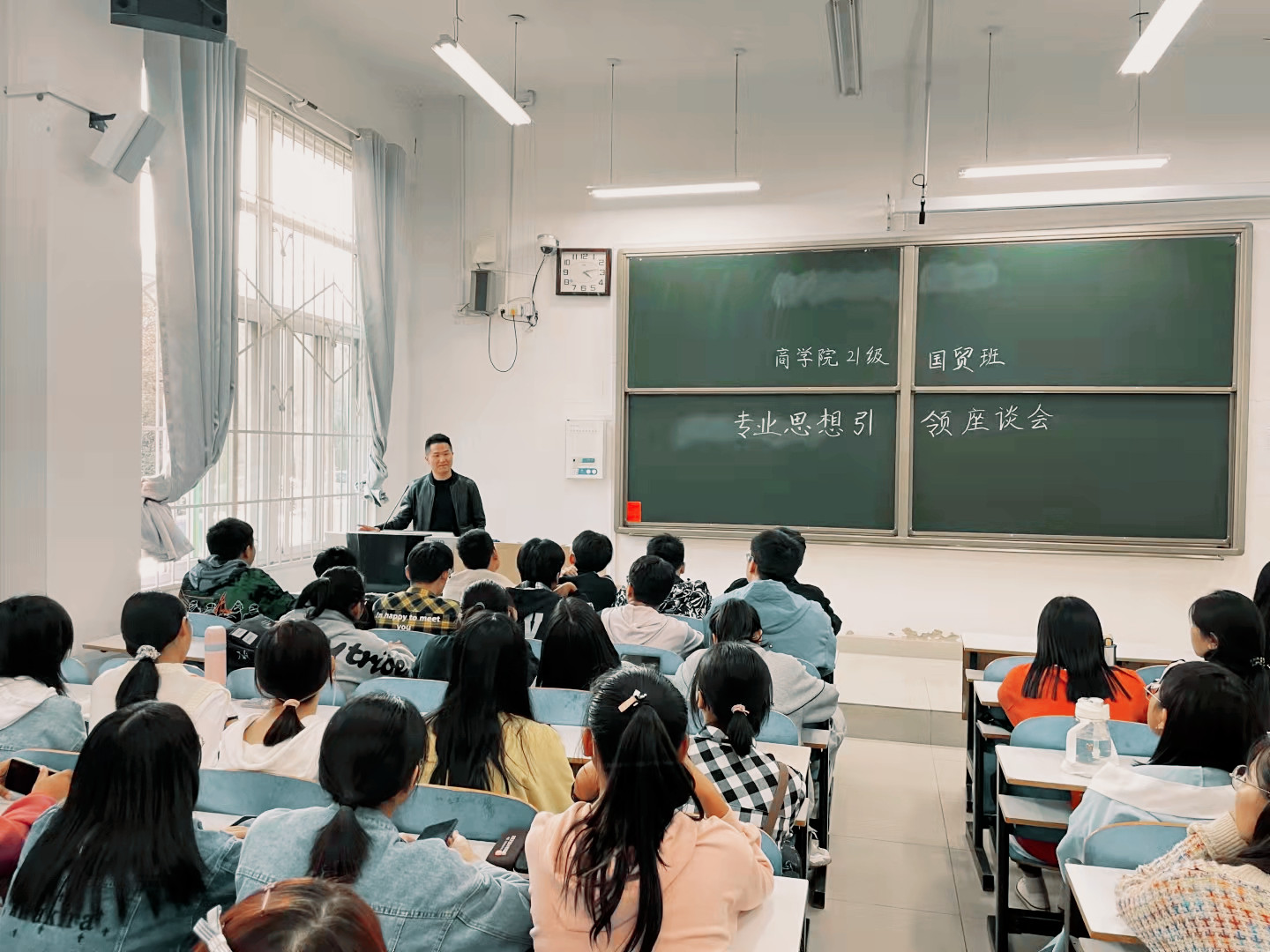 为帮助2021级新生尽快、全面地了解所学专业,使他们更好、更快地适应大学生活,提前做好大学四年规划,确定未来发展目标,10月12日下午, 4k影视 各专业系在经管楼组织新生召开专业思想教育座谈会。