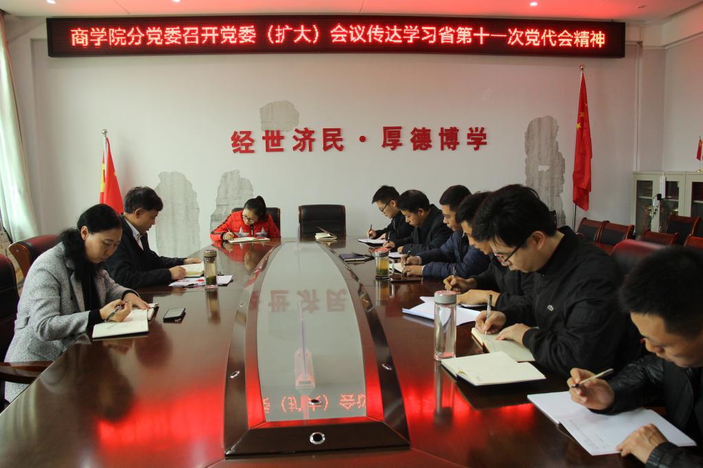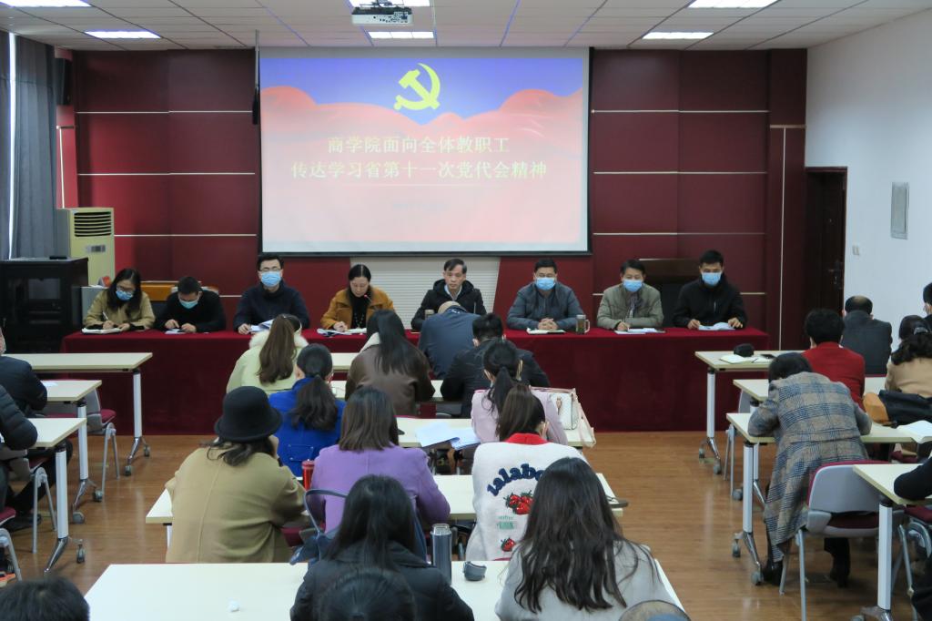 11月9日, 4k影视 在经管楼310会议室召开全体教职工大会,传达学习省第十一次党代会精神。会议由 4k影视 院长彭荣胜主持,全体教职员工参加。 4k影视 党委副书记张海霞进行领学。